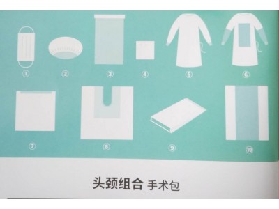 手术包配置:一次性使用医用口罩1个、一次性使用帽1个、器械盘套1条、擦手巾(40*40cm)4块、一次性使用手术衣(普通型/加强型)各1件、U型单1条、边单4条、针袋1条、一次性使用包布1条。