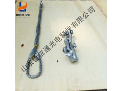 组成:内层护线条预绞丝,中层预绞丝,外层绞丝 ,U型环连接螺栓 。内层护线条预绞丝:材料选用铝包钢丝,与OPPC光缆所有的铝包钢丝为同一材料,预绞丝内壁通过高强度高分子水溶性环保胶粘剂粘有一层金钢沙,以增加与光缆间的摩擦力,预绞丝在生产时被预制成四个子束,便于快速安装,中层、外层耐张线夹预绞丝材料选用;铝包钢丝,预绞在工厂加工时被制成一束并在内壁粘有一层牢固的白刚玉砂,已达到对光缆减小压力的条件下增加耐张的握力,用户根据选用规格表按光缆径。,光缆工作张力(线夹使用张力)选配适合的张力线夹。