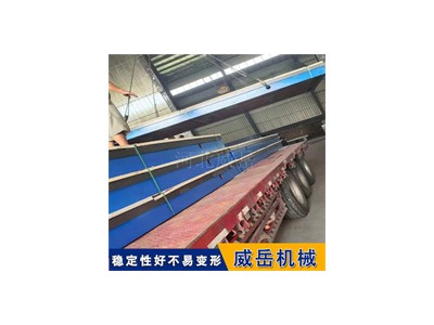 铸铁平板铸造汽车发动机试验铁底板,铸件时容易发生挠曲变形该如何应对,在生产铸造汽车发动机试验铁底板铸件时一般的铸铁件,壁厚差别不大且结构上刚度较大的都没有留反变形量。但是铸造汽车发动机试验铁底板产品、大的床身铸件、大型箱体类似及细长的纺织零件(如龙肋、胸梁等)类铸件时,由于冷速度的不均匀性,铸件冷后常发生挠曲变形,因此对于这些易发生挠曲变形的汽车发动机试验铁底板铸件应该正确对待,做出反变形量。发动机试验平台尺寸为:4200mm x 1760mm x 120mm,毛重6.92dun,去掉T型槽及地脚螺栓孔,净重约6.5dun。试验室采用整体试验平台,使发动机、测功机、铁地板以及配套附属试验设施形成一个的整体。